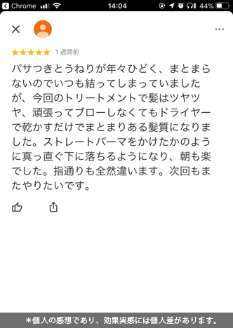 【1つ目の約束】すべてのお客様にオーダーメイドな髪質改善/縮毛矯正を。